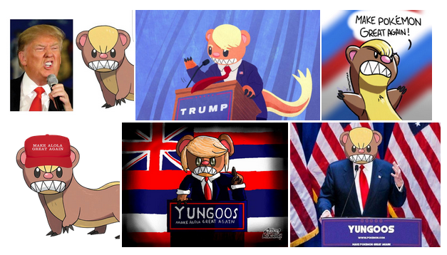 È quindi chiaro che Yungoos e la sua evoluzione sono stati creati in tempi “non sospetti”, ed è stata solo la pettinatura del pelo delle due manguste con la pettinatura del candidato Presidente a suscitare una bizzarra ricerca alle somiglianze nel popolo della Rete.