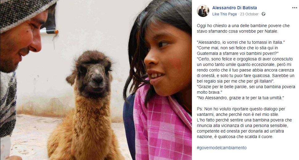 L’immagine, inoltre, non è stata scattata in Guatemala ma in Argentina, caricata il 18 febbraio 2017 sul profilo Instagram di Di Battista: