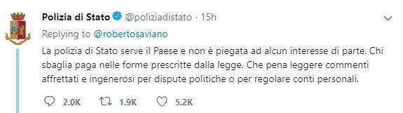La notizia è dunque vera: la Polizia di Stato ha risposto al commento di Saviano sull’operato degli agenti durante i disordini di Casal Bruciato.