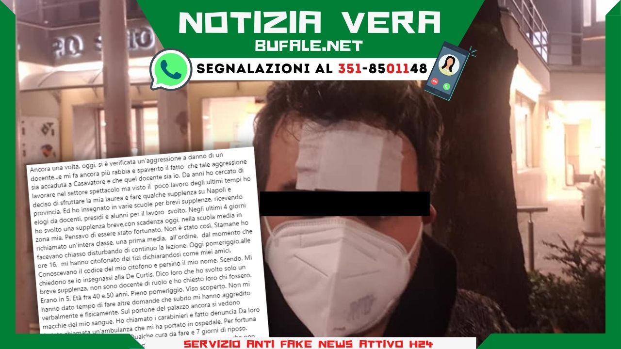 Docente pestato in pieno giorno, sotto casa sua, per aver rimproverato gli alunni che facevano chiasso. È quanto accaduto a Casavatore, in provincia di Napoli. A raccontare la vicenda è la stessa vittima sui social. Lui, E.M., 42 anni, aveva appena concluso l’ultima giornata di una supplenza breve presso una scuola media.