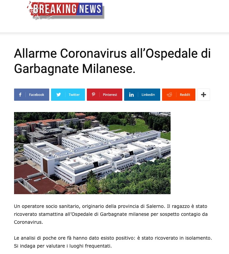 Caso Coronavirus all’ospedale di Garbagnate, ma è una BUFALA oggi 22 Febbraio