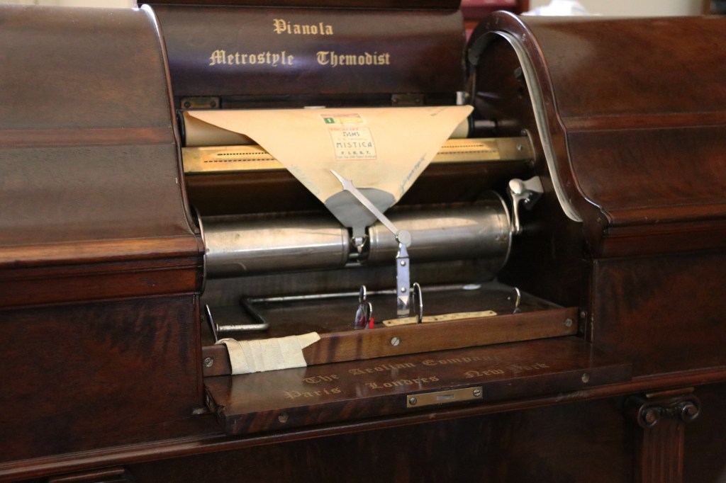 Sempre nell’800 la Pianola o Pianoforte Meccanico ci ha regalato lo scenario tipico dei film ambientati nel “Selvaggio West” del pianista che si accompagna con un nastro perforato che lo aiuta suonando alcune note e che, comicamente, continua a suonare mentre i pistoleri gli sparano addosso ignorando il cartello “non sparate al pianista” e mentre le pallottole flagellano il delicato meccanismo.
