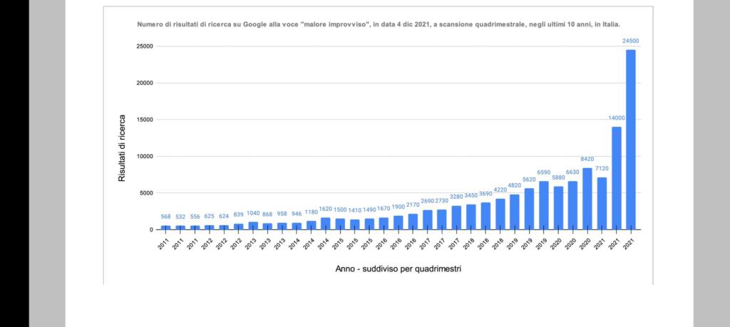 Ai più acuti tra voi non sfuggirà una cosa: la didascalia di Google è “ricerche alla voce malore improvviso”.