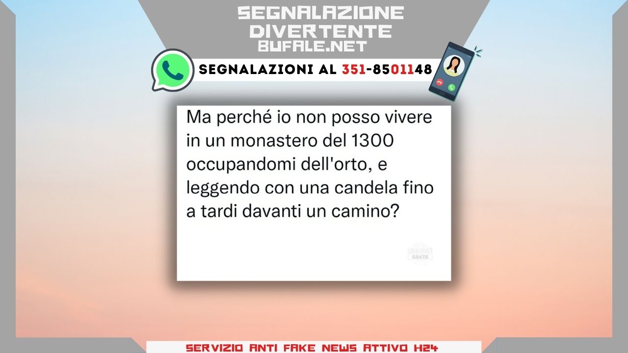 Ma perché io non posso vivere in un monastero del 1300 occupandomi dell’orto, e leggendo con una candela fino a tardi davanti a un camino?