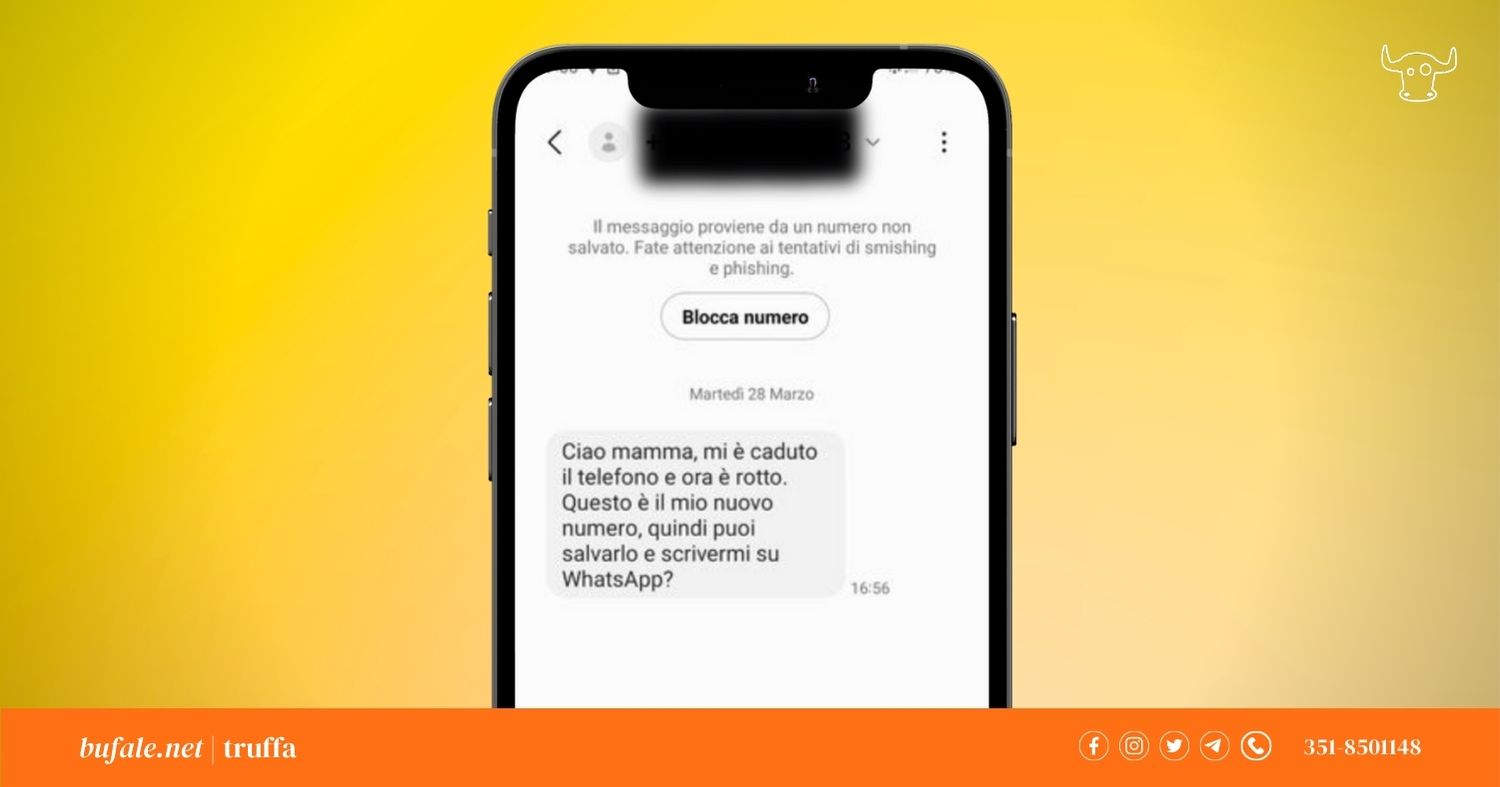 “Ciao mamma, mi è caduto il telefono e questo è il mio nuovo numero”, questa è parte del testo che si può ricevere via SMS nel quale un potenziale congiunto ci invita a memorizzare in rubrica il nuovo numero e di contattarlo via WhatsApp.