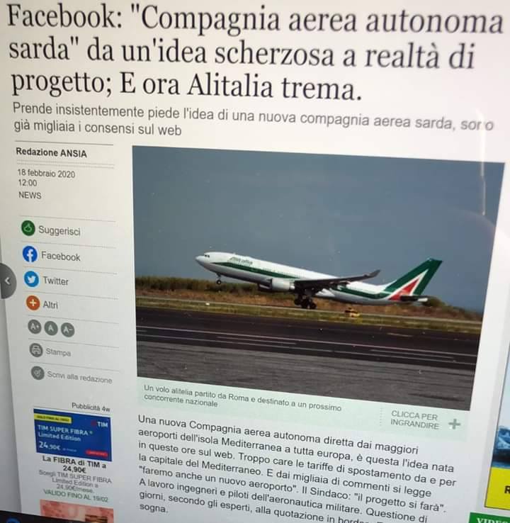 Prima o poi doveva succedere: nel gruppo Facebook in cui c’è chi crede veramente alla possibilità di creare una compagnia aerea autonoma sarda da una semplice colletta si è insinuato il germe del fake. Non una semplice immagine con scritta sovrimpressa, bensì una di quelle piccole opere d’arte create su imitazione di pagine web con effetto distorsione della superficie. L’argomento, ovviamente, è quello che interessa AirItaly.