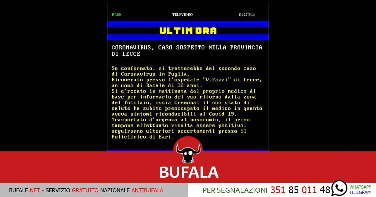 Coronavirus, caso sospetto nella provincia di Lecce – ancora bufale da Televideo fake