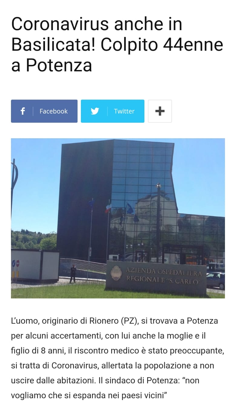 Non ci sono contagiati in Basilicata e la notizia che sta circolando è FALSA!!!