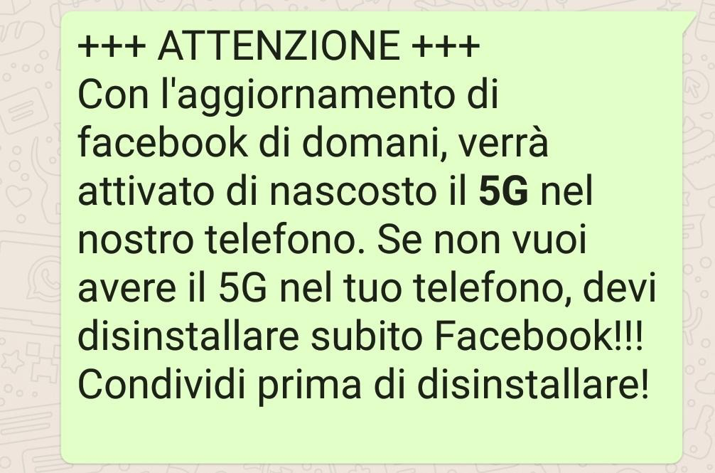 “Da domani Facebook installa il 5G nel tuo telefono, se non lo vuoi devi disinstallare Facebook”