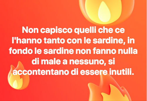 Il tutto con commenti che vi lasciamo immaginare e che in una reale pagina delle Sardine non avrebbero senso.