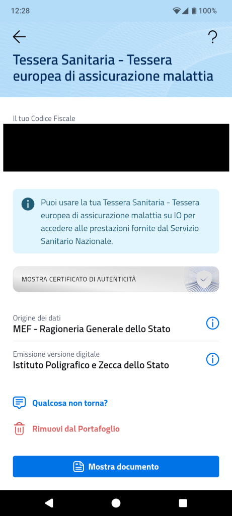 La Tessera Sanitaria ha avuto esito istantaneo: l’Istituto Poligrafico di Stato, previo contatto col MEF per verifica ha rilasciato copia digitale, con tanto di certificato di autenticità, della Tessera Sanitaria. Processo istantaneo.