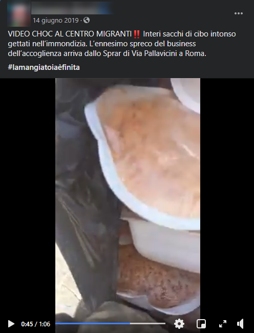 Nel 2019 avevamo flaggato come Analisi in corso un video che mostrava sacchi di cibo buttato nella spazzatura vicino a un centro d’accoglienza. Secondo la voce che commentava le immagini, quei sacchi pieni di pietanze erano stati trovati nel Municipio IX della Capitale, più precisamente in Via Pallavicini dove sorge uno Sprar. Il video che oggi viene condiviso nuovamente era stato pubblicato il 14 giugno 2019 da esponenti della Lega.