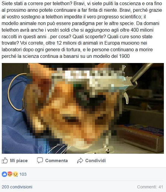DISINFORMAZIONE BUFALA Siete stati a correre per Telethon? Allora torturate gli animali – bufale.net