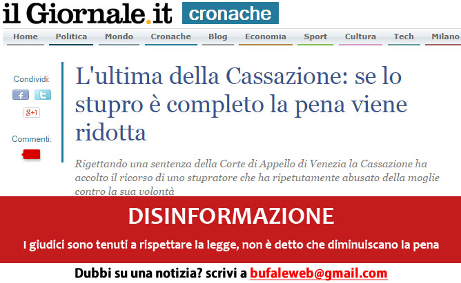 DISINFORMAZIONE Cassazione: se lo stupro è completo la pena viene ridotta – Bufale.net