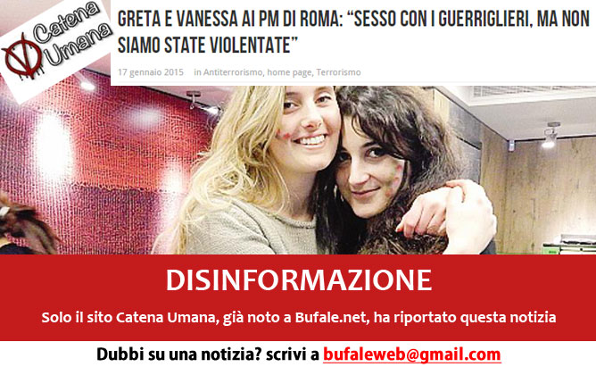DISINFORMAZIONE Greta e Vanessa ai pm di Roma: "sesso con i guerriglieri, ma non siamo state violentate" – Bufale.net
