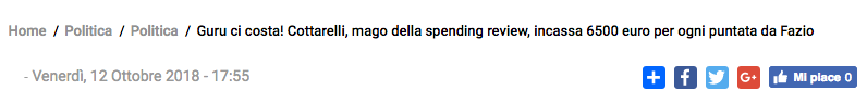 Pare che cavallo di battaglia della disinformazione più acchiappaclick siano i costi di “Che tempo che fa”, in questo caso i famigerati 6500 euro di Cottarelli.