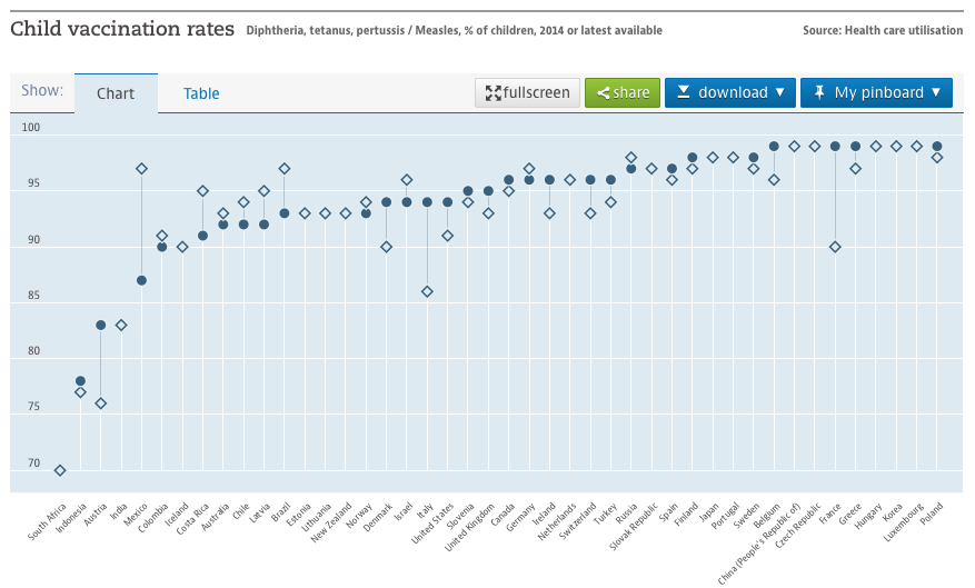 Analizziamo ora il dato vaccinale secondo OECD degli stati membri dell’Unione (e non) al 2014