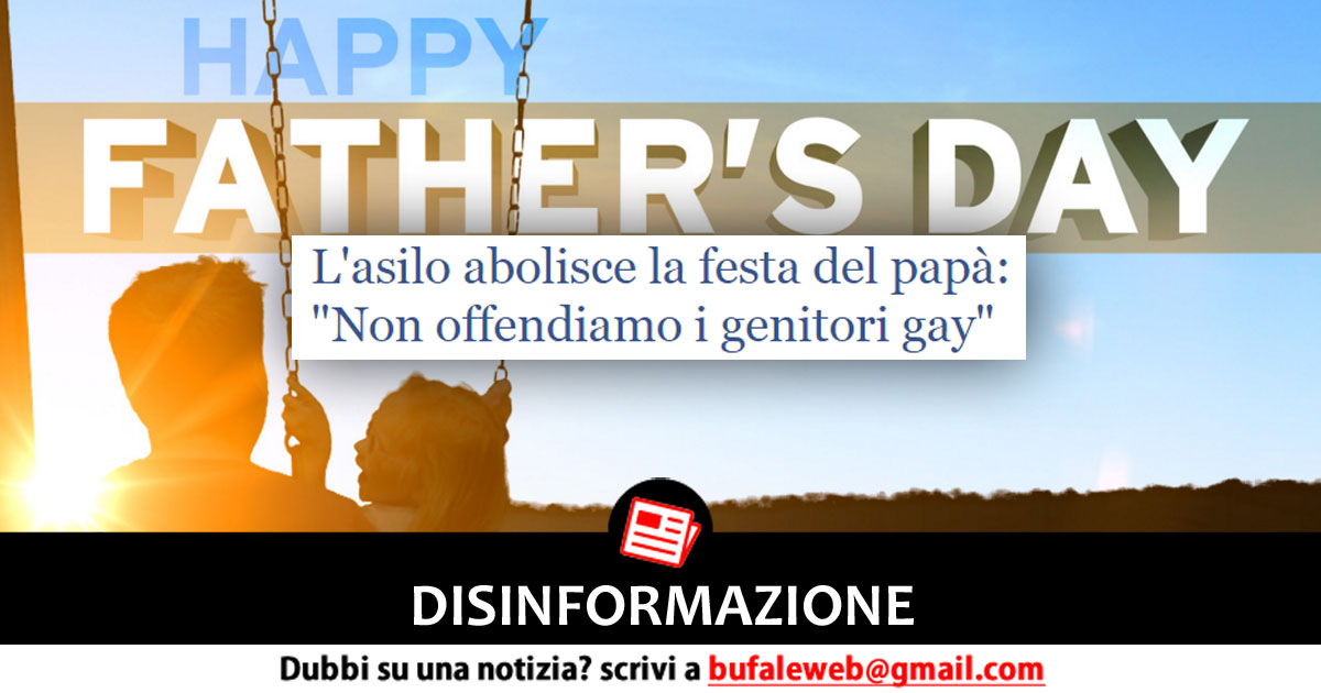 DISINFORMAZIONE L’asilo abolisce la festa del papà: “Non offendiamo i genitori gay” – Bufale.net