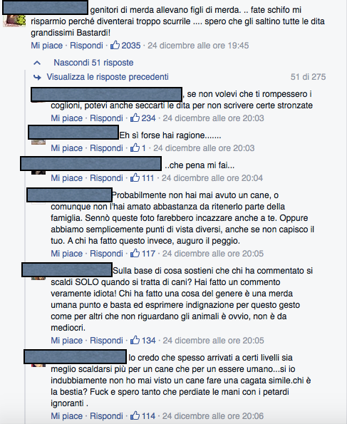 «Spero che siate orgogliosi di dare ai vostri figli la possibilità di acquistare petardi per combinare danni simili.Complimenti per l’educazione data a chi è stato in grado di fare una cosa simile. Disgustato. Vanno ringraziati la dot Ballocco e dot Masala per aver saltato la cena di Natale per dare assistenza al povero cane. Soccorso fatto su disposizione asl1 Dr. Rassu».