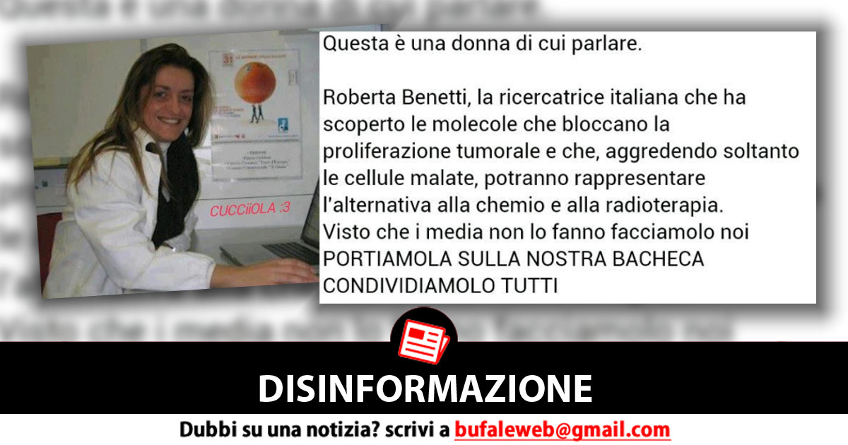 DISINFORMAZIONE Roberta Benetti e l’alternativa alla chemio e alla radioterapia