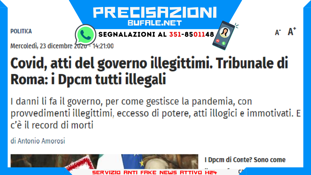 Ci segnalano i nostri contatti l’ordinanza ordinanza 45986/2020 del tribunale di Roma, usata per dimostrare “l’illegittimità dei DPCM”.