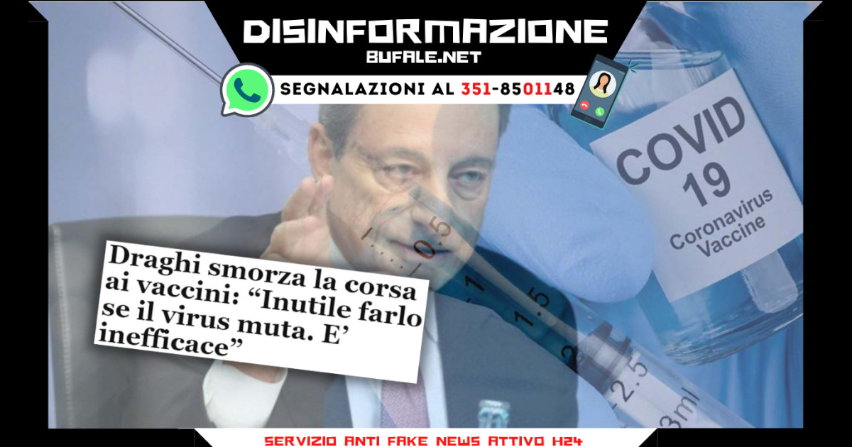 Draghi sui vaccini: “Inutili se il virus muta”, ma è la solita decontestualizzazione dei no-vax
