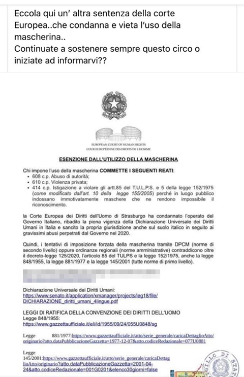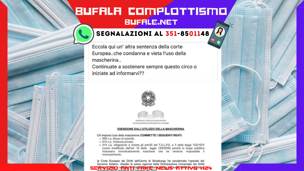 “Ecco qui una sentenza della Corte Europea contro le mascherine”… ma manca la sentenza