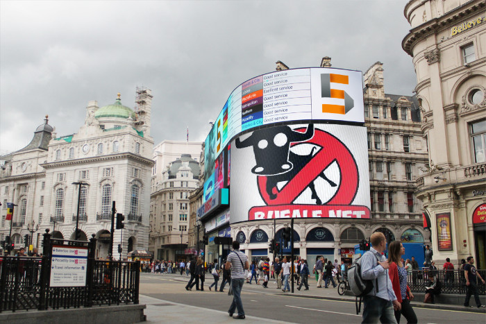 Esibiscono una foto di Puzzer a Picadilly Circus, ma era un montaggio Photofunia