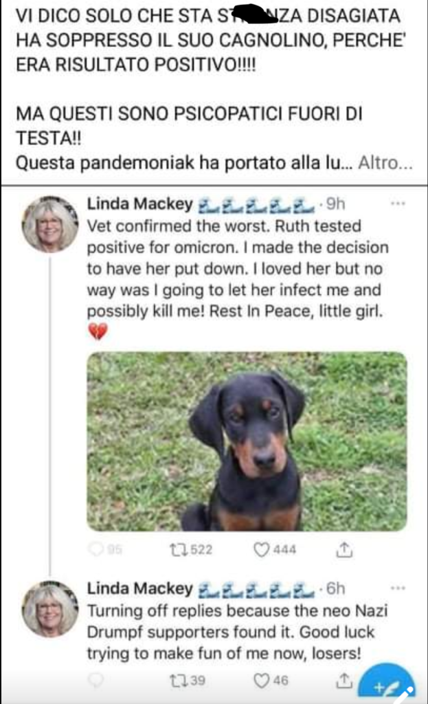 Femminista propandemia fa abbattere cane positivo a COVID19: ma era un account parodia
