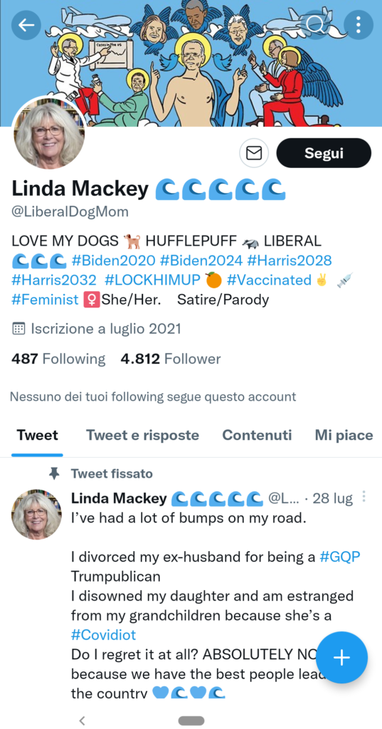 E “liberaldogmom” è chiaramente un account-parodia creato per deridere lo stereotipo della femminista libdem di mezza età.