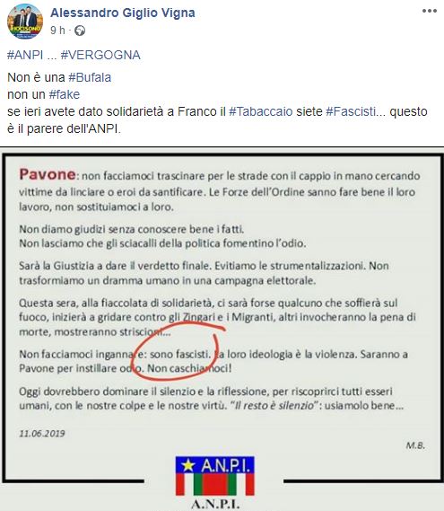 se ieri avete dato solidarietà a Franco il #Tabaccaio siete #Fascisti… questo è il parere dell’ANPI.Pavone: non facciamoci trascinare per le strade con il cappio in mano cercando vittime da linciare o eroi da santificare. Le Forze dell’Ordine sanno fare bene il loro lavoro, non sostituiamoci a loro.