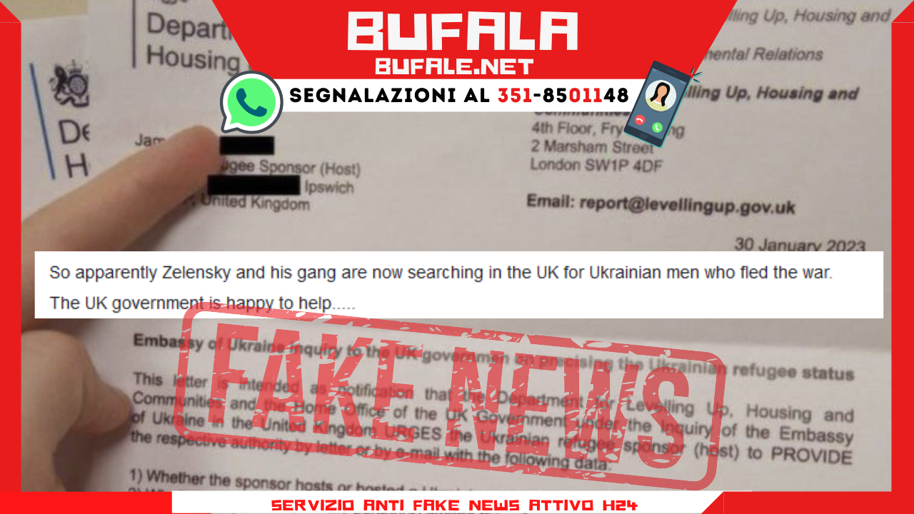 Una finta lettera diffusa online, coi tipici errori di grammatica di qualcuno che non conosce l’inglese e vi ci si cimenti lo stesso invita chiunque abbia ospitato profughi Ucraini a denunciarli all’ambasciata sotto pena di “riduzione dei rimborsi economici”.