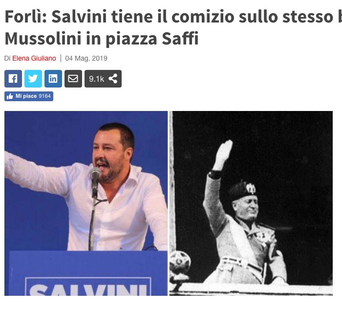 Sta facendo molto discutere in queste ore la probabile pubblicazione di un post da parte di un candidato PD, tale Ottavio Giulio Rizzo, in cui sarebbe apparso Matteo Salvini a testa in giù. Una chiara rievocazione storica della fine di Benito Mussolini, giustiziato a Piazzale Loreto nelle modalità che tutti conoscono. Un’associazione chiara tra l’ideologia fascista e alcuni concetti portati avanti dal Ministro degli Interni, come molti hanno evidenziato dopo le sue parole durante la contestazione a Modena di venerdì scorso. A tal proposito, trovate maggiori dettagli con il nostro pezzo.