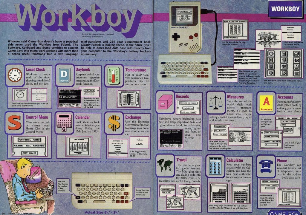 Nessuna connettività di rete, diario e orologio multifunzione ed una piccola tastiera avrebbe consentito agli aspiranti manager del domani di decidarsi a prendere appunti e formulare il proprio calendario sulla stessa console con cui giocavano a Super Mario e Pokemon, gestendo altresì la propria agendina telefonica.