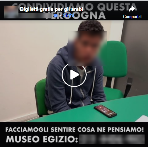 Nel 2018 avevamo dedicato due articoli ad un video messo in rete da A.C., allora leader del Movimento Giovani Padani e assistente di Matteo Salvini a Bruxelles, in cui denunciava che il Museo Egizio di Torino promuoveva l’ingresso gratuito per i cittadini di origine araba. Nel video messo in rete, l’attuale deputato e vicesegretario della Lega mostrava una telefonata al call center del Museo. L’operatore gli parlava di tariffe agevolate con la possibilità di ingresso gratuito solo per i cittadini arabi.