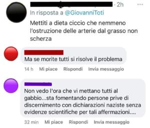 Come se non bastasse, anche molti commenti sotto il post di Toti sono risultati essere molto aspri e critici nei suoi confronti (anche se in questo caso sono stati generalmente attenti a dosare le parole), a testimonianza del forte clima di tensione che stiamo respirando in questi giorni.
