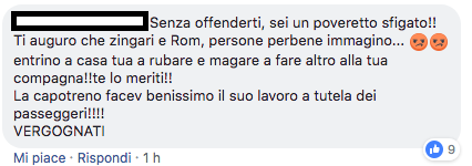 Ti auguro che zingari e Rom, persone perbene immagino… 😡😡entrino a casa tua a rubare e magare a fare altro alla tua compagna!!te lo meriti!!