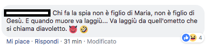 Chi fa la spia non è figlio di Maria, non è figlio di Gesù. E quando muore va laggiù… Va laggiù da quell’ometto che si chiama diavoletto. 😈
