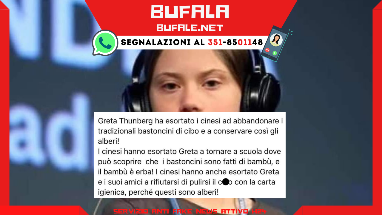 Greta Thunberg contro le bacchette cinesi è uno di quei mirabolanti racconti del mondo delle “informazioni non meglio verificate” che amiamo chiamare fake news se non direttamente complotti.
