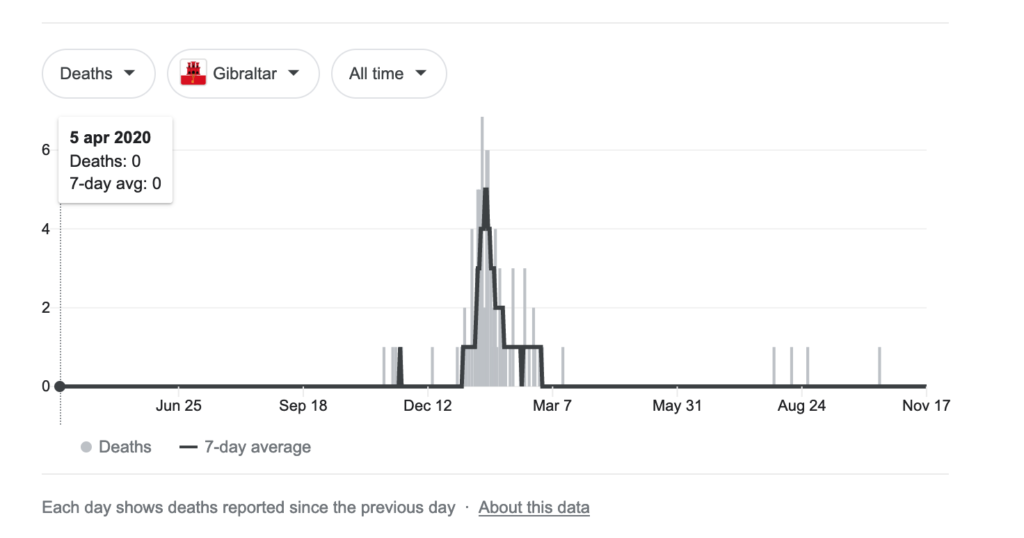 A Gibilterra nessuno (salvo quattro decessi a intervalli distanziati) è morto più di COVID19 da Marzo.