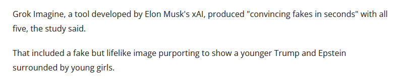 Secondo uno studio riportato da AFP l’attuale stato dell’arte di strumenti generativi come Grok e Sora consente a chiunque di creare in pochi minuti ore ed ore di falso girato con tutti i personaggi possibili, e il livello “lasco” di salvaguardie etiche e morali alla spalle di Grok ha consentito di creare video con dei giovani Trump ed Epstein circondati da bambine minorenni.