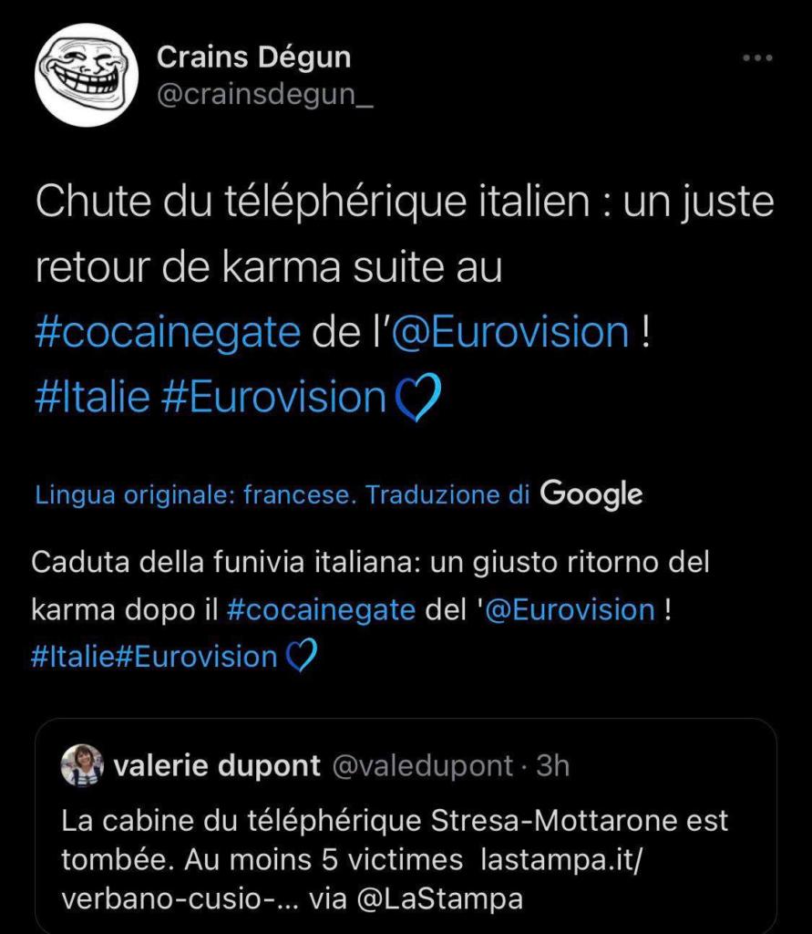 Abbiamo già parlato di come la sconfitta all’Eurofestival abbia scatenato in alcuni utenti d’Oltralpe la gara alla bufala, ovvero l’invenzione del #cocainegate.