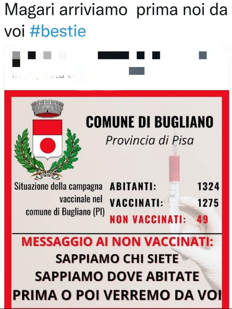 Il Comune di Bugliano viene a prendere i non immunizzati, ma è una fake news