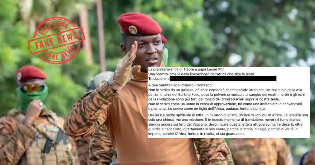 Il (falso) discorso del Presidente del Burkina Faso a Papa Leone XIV: Traoré diventa idolo del complotto