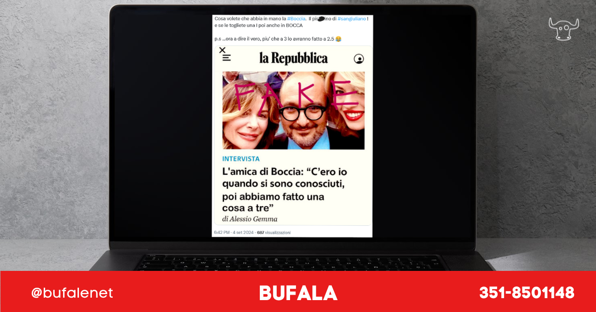 Il presunto post piccante di Repubblica sul rapporto a tre di Sangiuliano, ministro della Repubblica Italiana, è ovviamente un fake. Fake pubblicato su X, come abbiamo visto uno dei due social prediletti per simili operazioni (l’altro è Telegram).