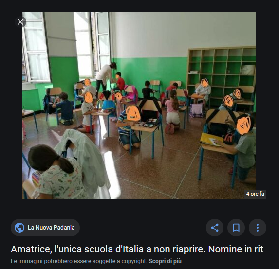La scuola che dirigo dal 1 settembre ha svolto un grande lavoro nei mesi estivi per organizzare la riapertura. Come molte altre scuole, ha affrontato le difficoltà di questi ultimi giorni con spirito costruttivo e collaborativo: tra queste difficoltà, i ritardi nella consegna degli arredi. I banchi, ordinati con largo anticipo, arriveranno domani pomeriggio e nel primo giorno di scuola, che è stato un giorno di festa, abbiamo solo evitato di rimettere quelli vecchi. La foto ritrae bambini che, durante un’attività didattica, stanno disegnando sereni in libertà: un’ingenuità, da parte dell’insegnante, farla girare, ma sbagliato e grave strumentalizzarla, strumentalizzando, con essa, soprattutto i bambini, in una giornata nella quale avevamo riscontrato solo grande entusiasmo e nessuna criticità. Nel mio Istituto ho trovato docenti preparati e motivati, che difendo, e bambini sorridenti e felici di tornare a scuola. Questa è l’immagine che porto nel cuore da questo primo giorno e che desidero rimanga a famiglie ed insegnanti.