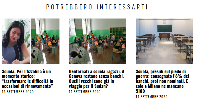 Nota a piè di pagina che raccoglie i tre articoli sulla scuola più vicini temporalmente, tra cui uno sul caso di Genova