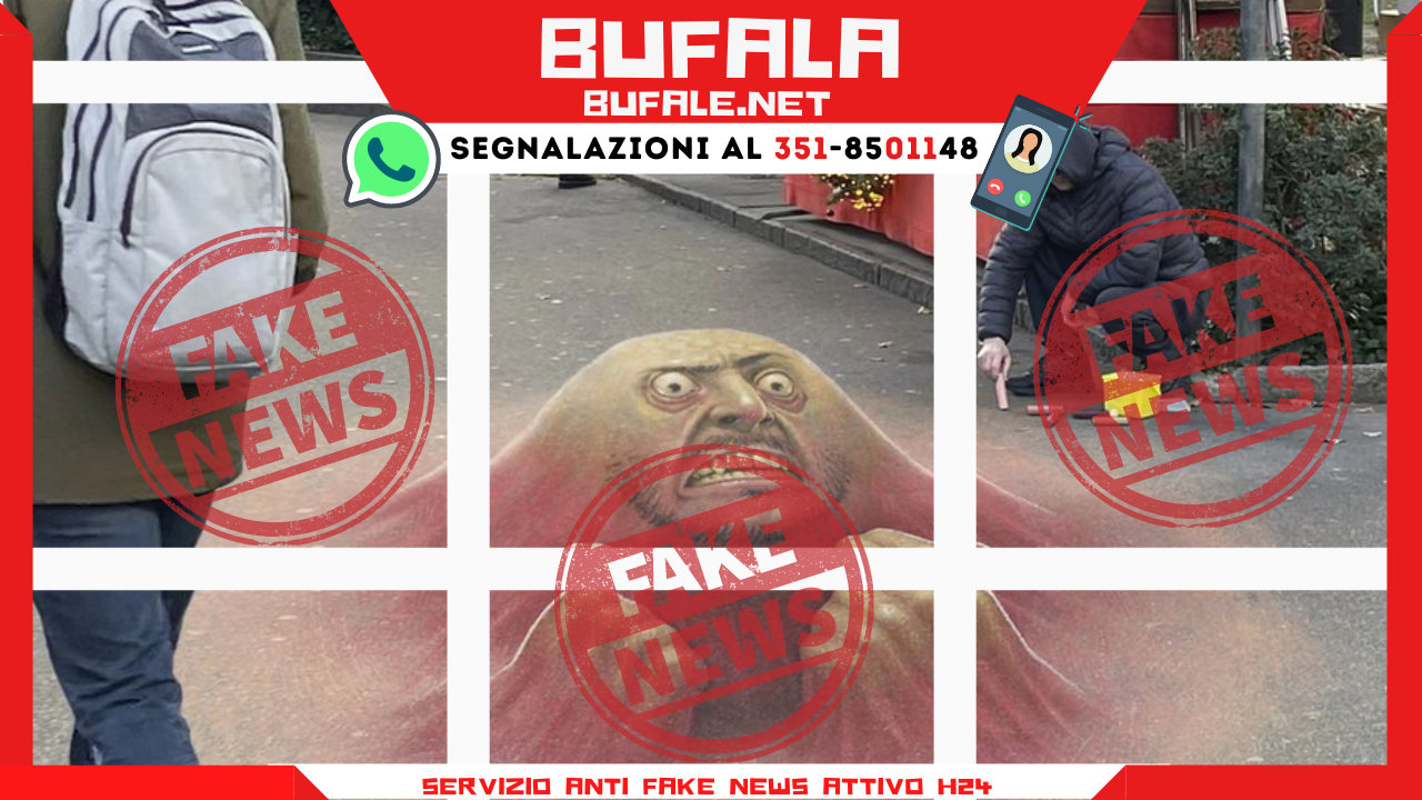 La pagina autrice del fotomontaggio, “Typical Optical”, ha più volte compiuto simili operazioni, creando l’illusione di una immaginaria squadra di madonnari che disegnano graffiti ingiuriosi verso Zelensky in giro per l’Europa, con l’altrettanto immaginario plauso degli Europei.