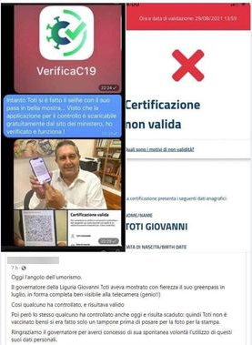 Gli utenti affermano di aver usato l’app Verifica C19 disponibile su Google Play per scansionare il QR code esibito da Toti. L’app, infatti, è stata sviluppata appositamente per verificare la validità dei green pass. Noi ci abbiamo provato, sia con Verifica C19 che con altre app di scansione del QR code, anche impostando al meglio l’immagine postata da Toti. Ebbene, non si riesce a scansionare il codice.
