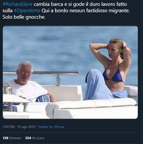 La prova è la risposta media che abbiamo al fact checking: il fatto che terminata la sua opera benefica a Lampedusa Richard Gere sia andato in vacanza sull’Isola del Giglio, a dire dei suoi hater lo renderebbe indegno come persona, come se detraesse qualcosa alle sue azioni.